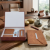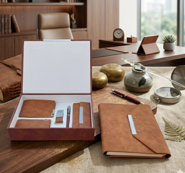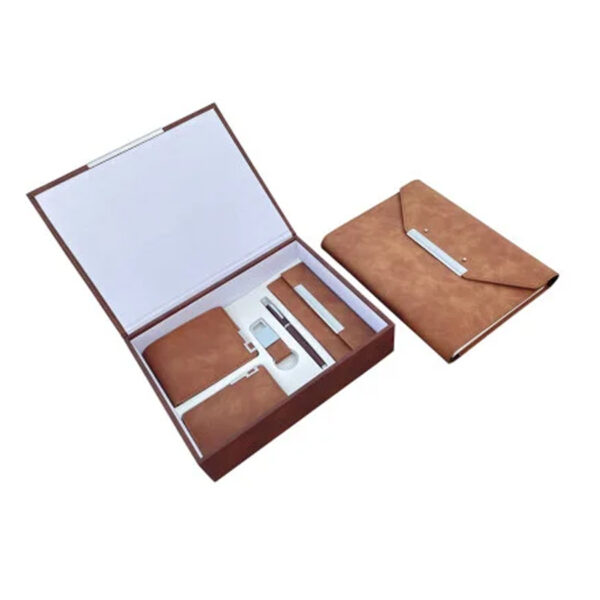 This is a gift combo of A5 organiser notebook, spectacle case, mens wallet, card holder key ring & metal roller pen, packed in an exclisive leatherette gift box.