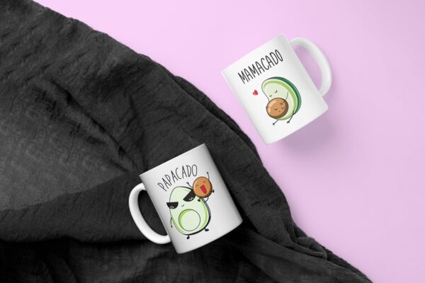 Pack of 2 ceramic mugs perfect for expecting parents – featuring cute ‘Mamacado’ and ‘Papacado’ designs for a lovely couple gift. These 330ml ceramic mugs are a great prop for maternity photoshoots or social media pregnancy reveal moments. The playful avocado-inspired design adds charm to your special announcement.